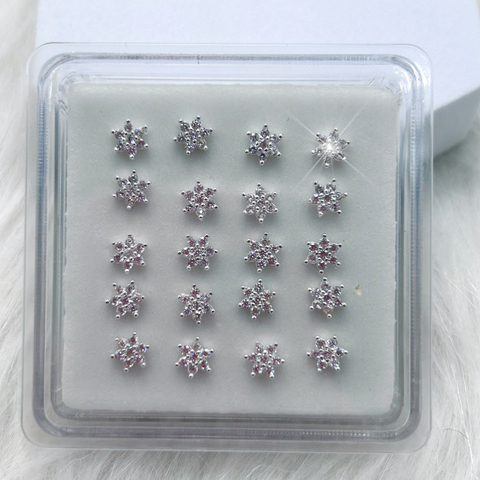 Atacado 925 Sterling Silver 2mm Crystal Clear Nose Stud Anel Nariz Piercing Jóias para As Mulheres